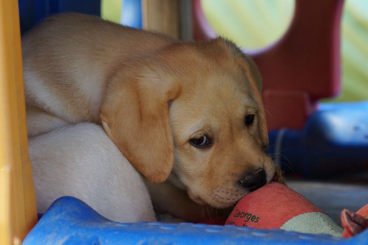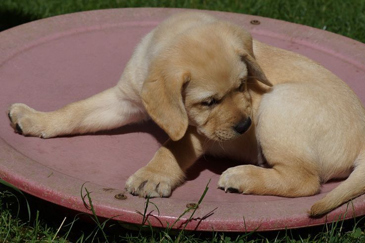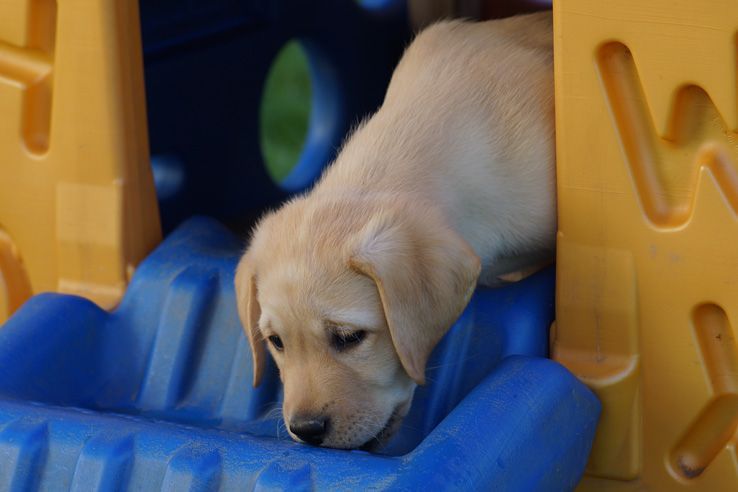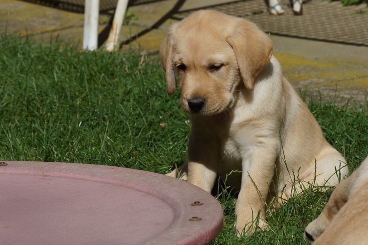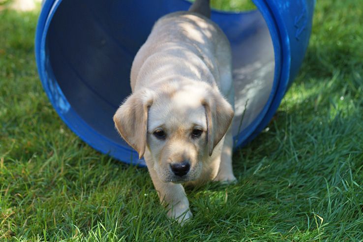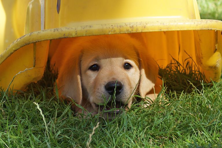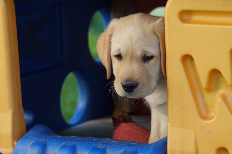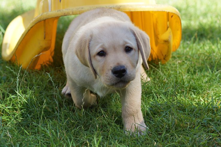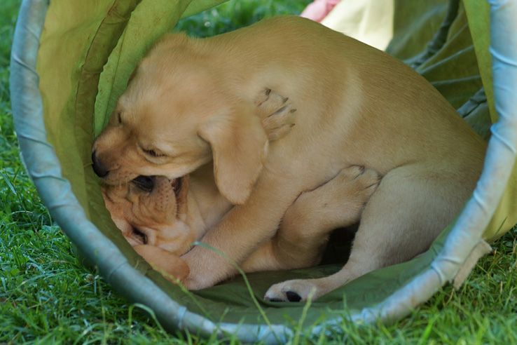 Wir genissen unsere gemeinsame Zeit und spielen viel zusammen. Es gibt viele Verstecke in unserem Welpengarten, die wir gerne nutzen.