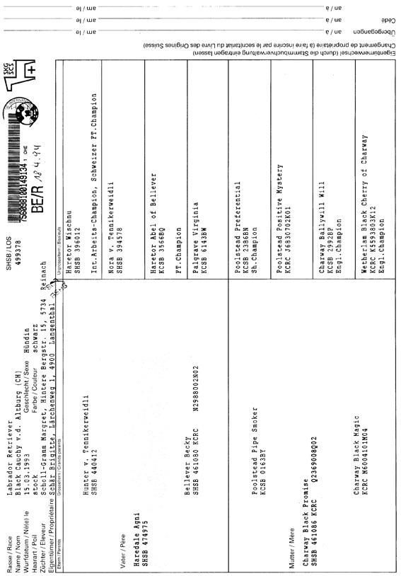 Hündin. Sie war sehr arbeitsfreudig und hat viele ausgezeichnete Prüfungsergebnisse