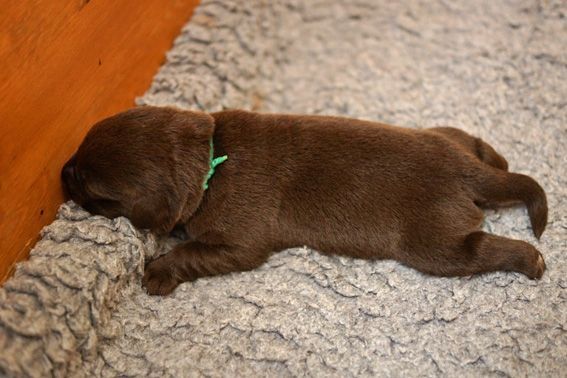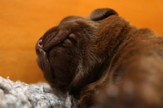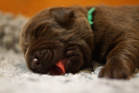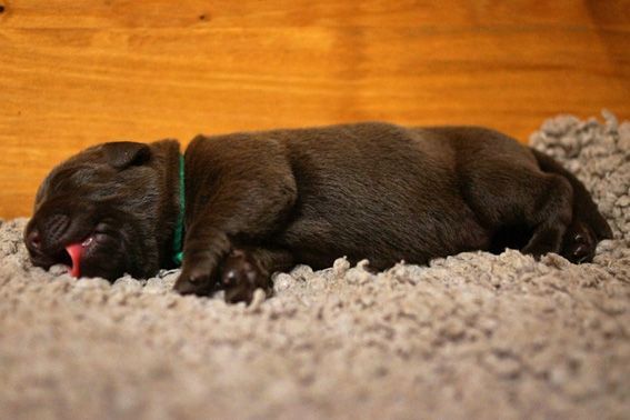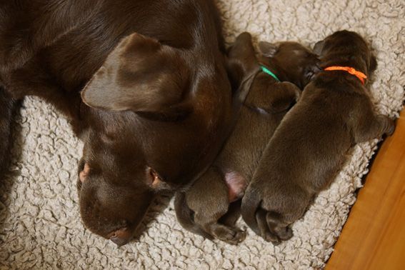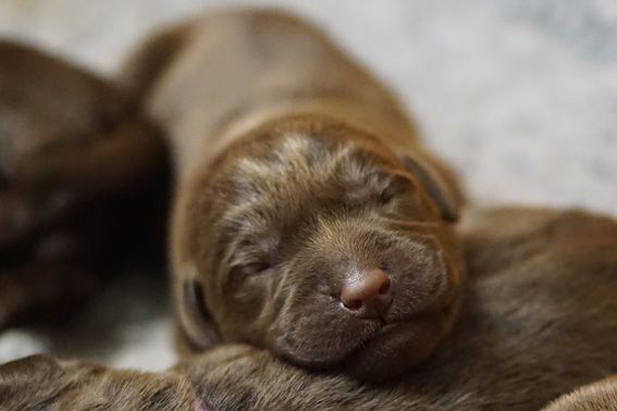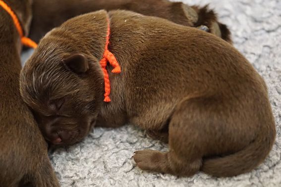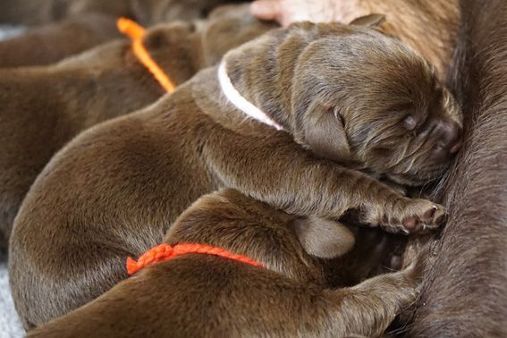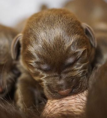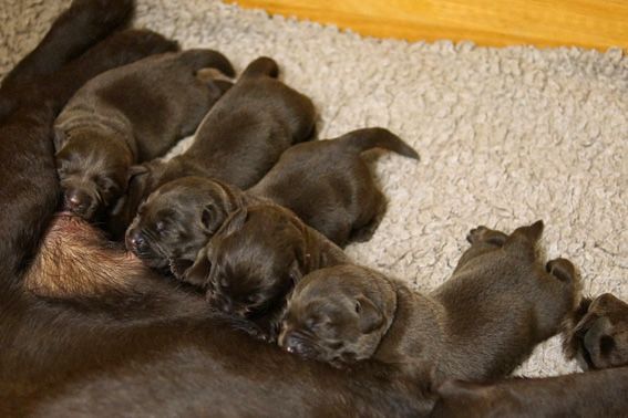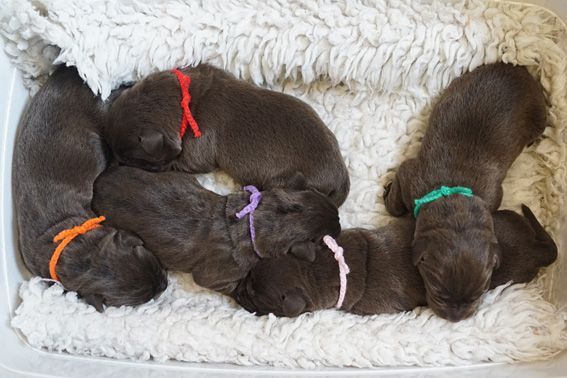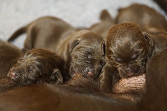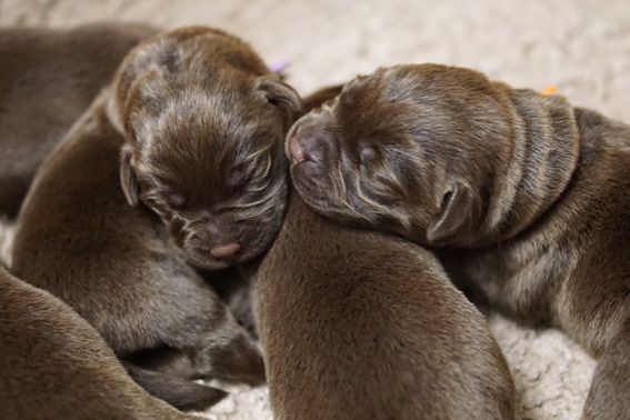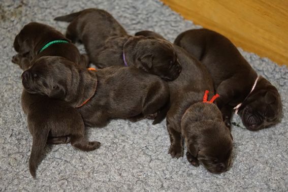 erwartet alle braun. Es sind 4 Rüden und 1 Hündin und sie wiegen bei Geburt zwischen