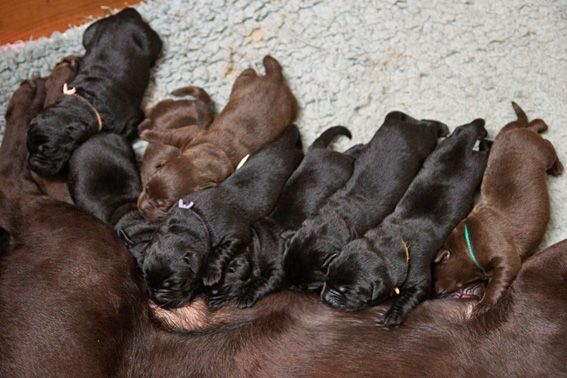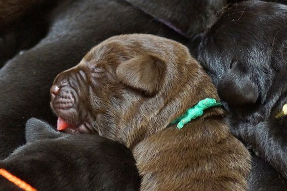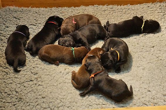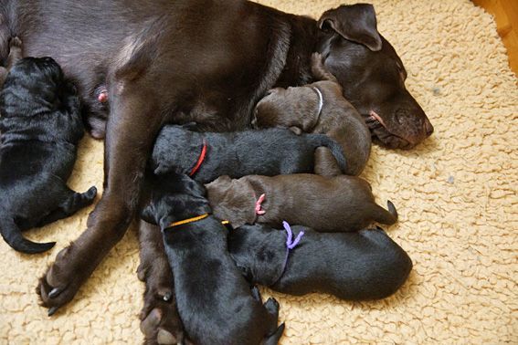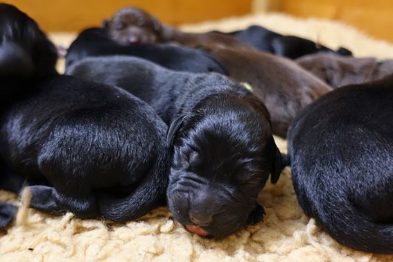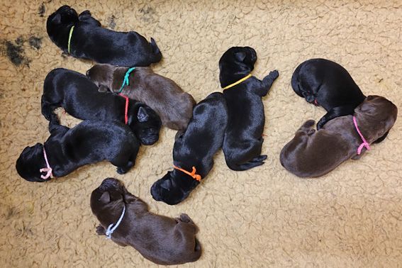 gebracht. Es sind 3 schwarze Rüden, 1 brauner Rüde, 3 schwarze Hündinnen