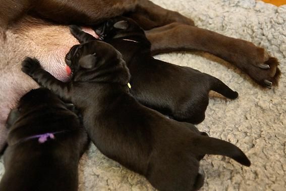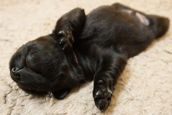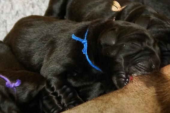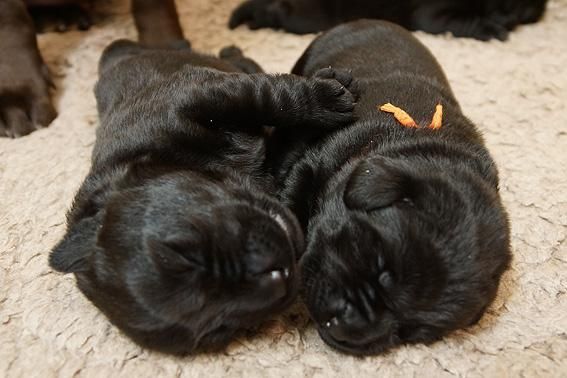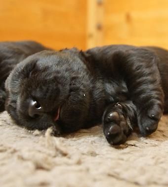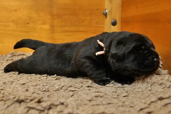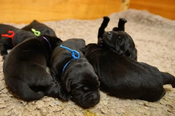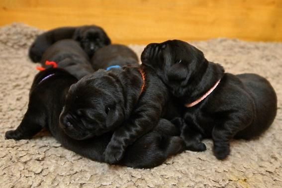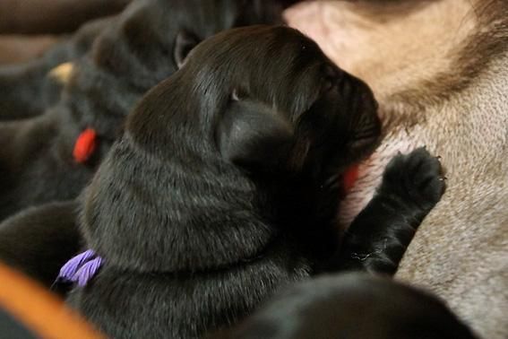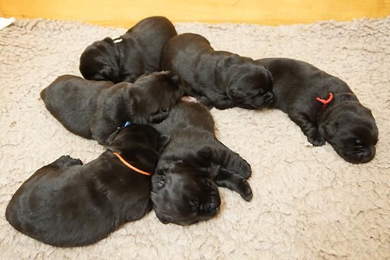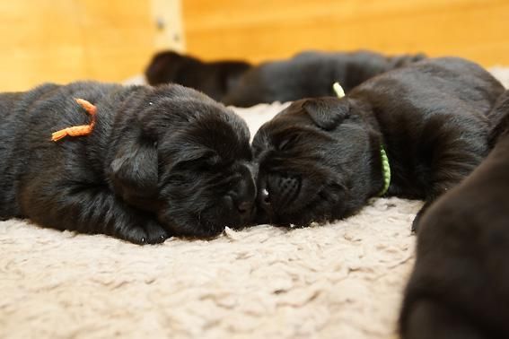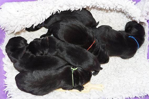 Alle Welpen sind schwarz. Sie wiegen bei Geburt zwischen 490 und 560 Gramm. Ella ist