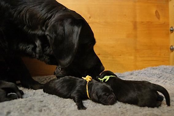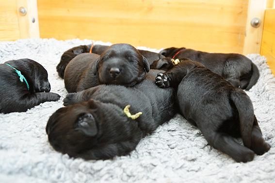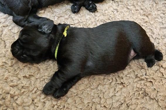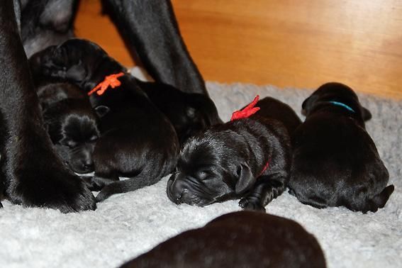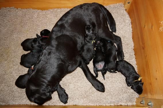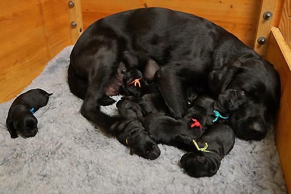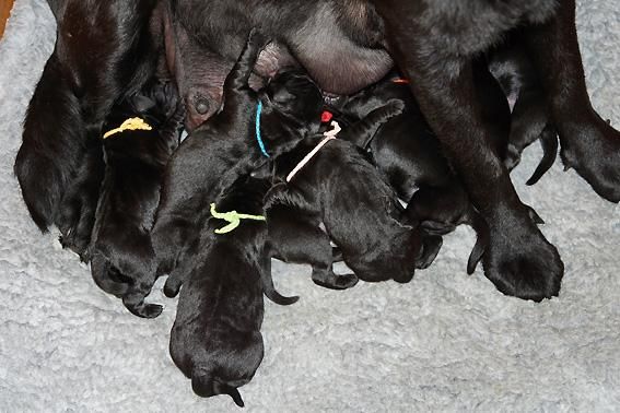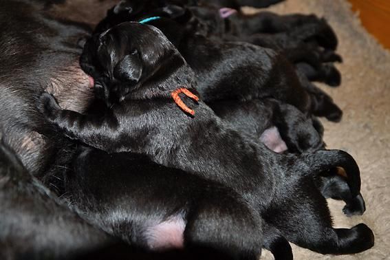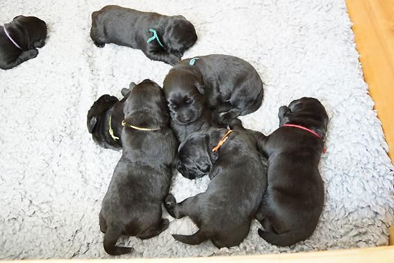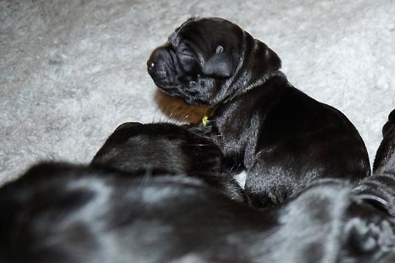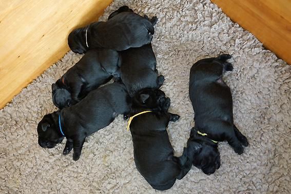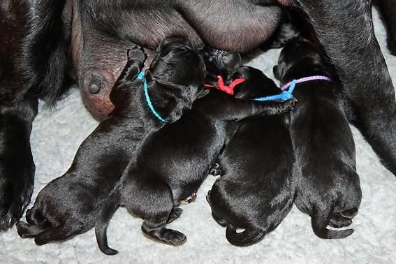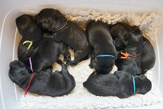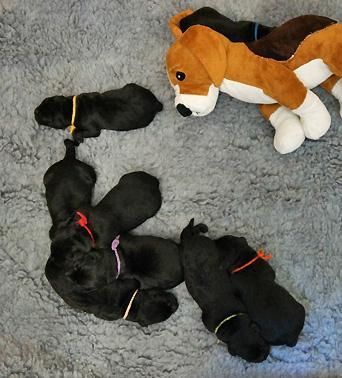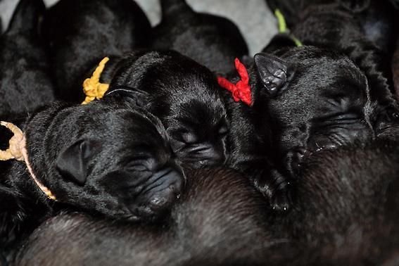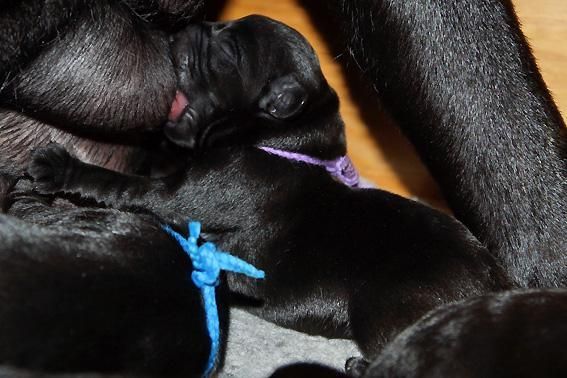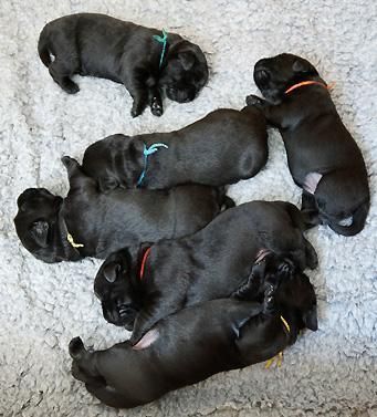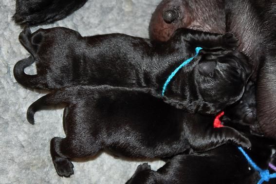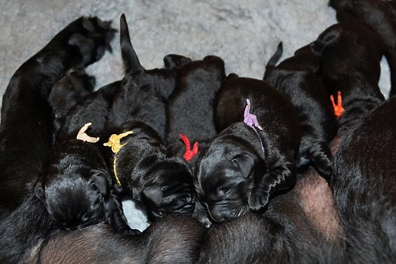 5 Mädchen. Alle Welpen sind schwarz. Sie wiegen bei Geburt zwischen 420 und 460 Gramm.