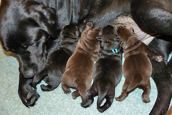 und brauner Rüde und je eine schwarze