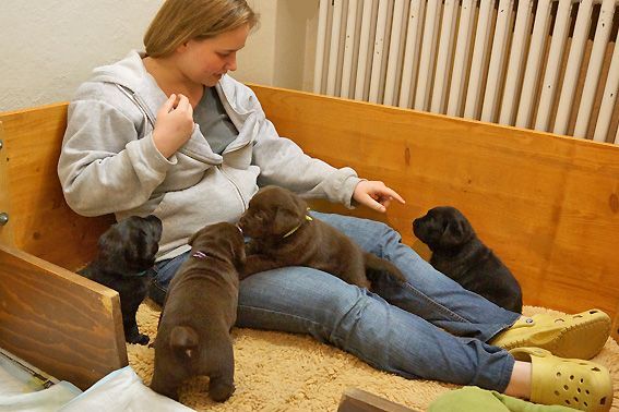 und braune Hündin. Molly kümmert sich