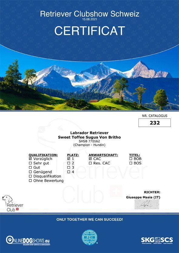 Auf der RCS Club Show vom 15. August wurde unsere Zucht durch 2 Labrdor Hündinnen