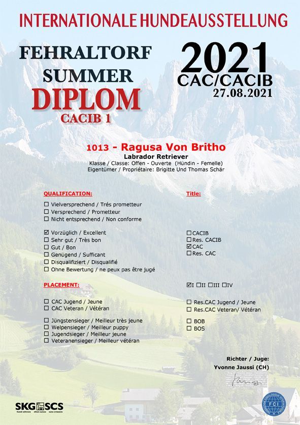 Ragusa von Britho, vorzüglich 1, CAC, BOS