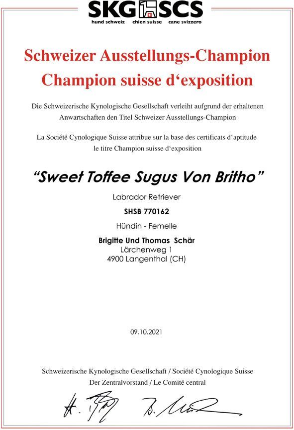 Sweet Toffee Sugus von Britho, vorzüglich 1, CAC