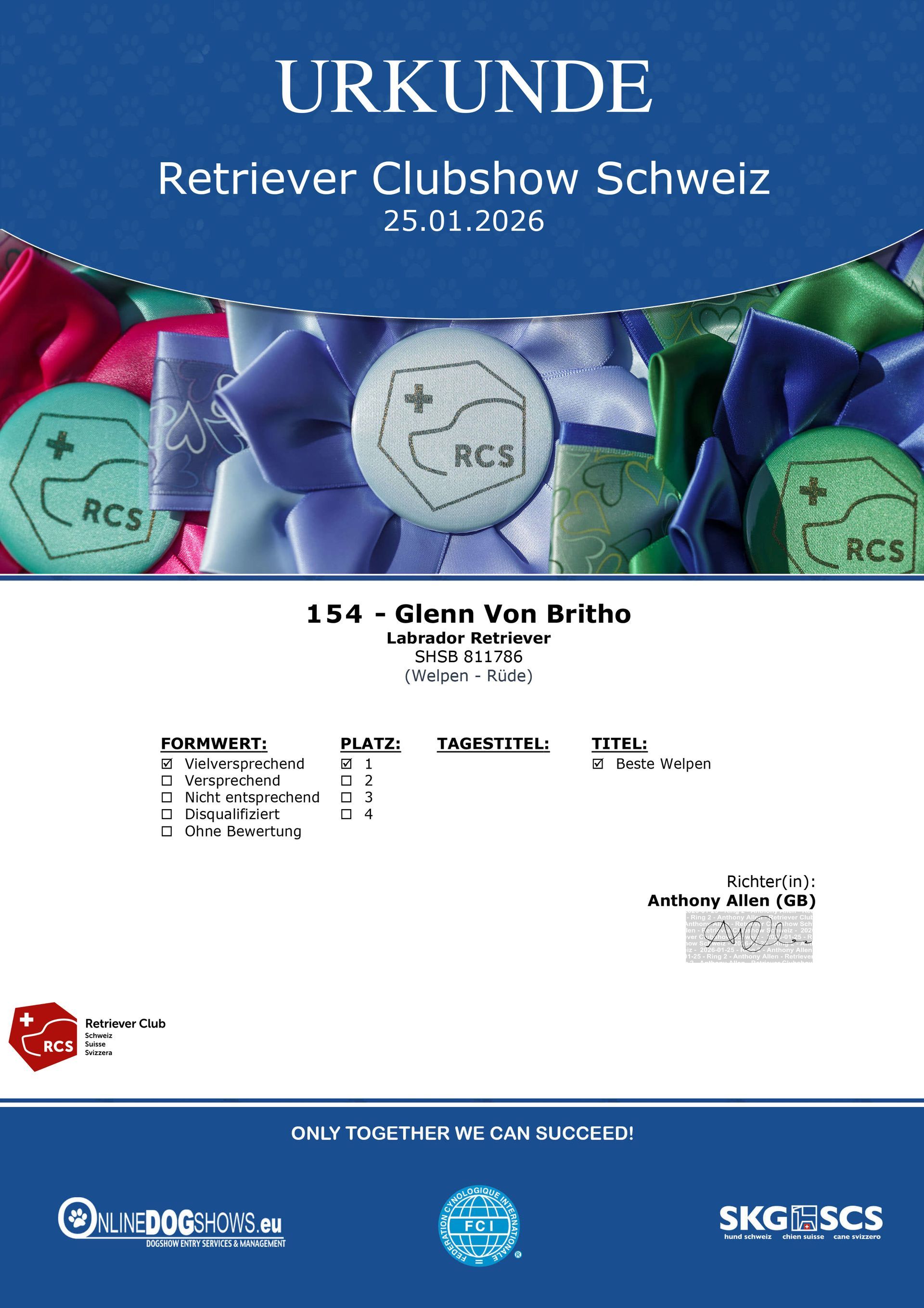Der ganz grosse Star war Glenn, er wurde mit vielversprechnd 1 auch bester Welpe.