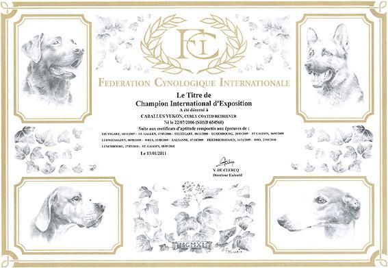 Finn hat den Titel "Internationaler Show Champion" der FCI erhalten