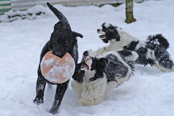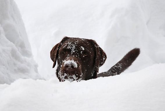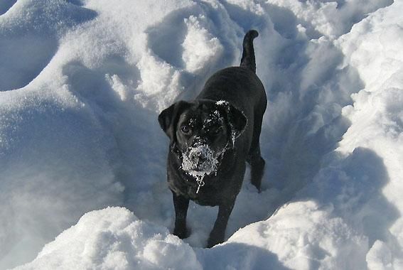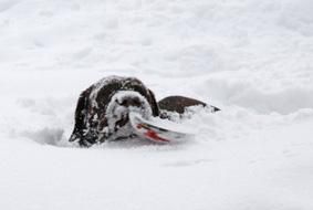 Ray in Verbier liebt das Spielen im tiefen Schnee