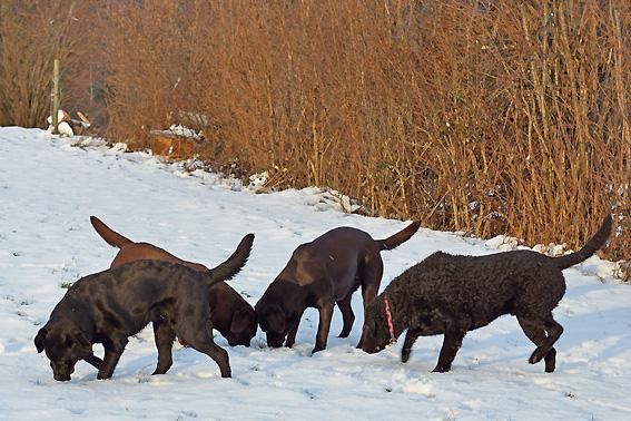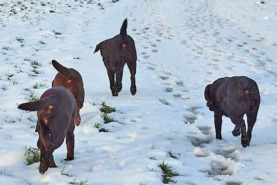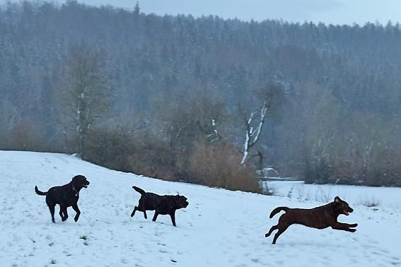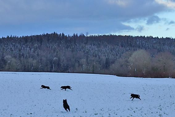 Wir toben uns richtig aus im frischen Schnee auf dem Spaziergang vom 29. Dezember 2011