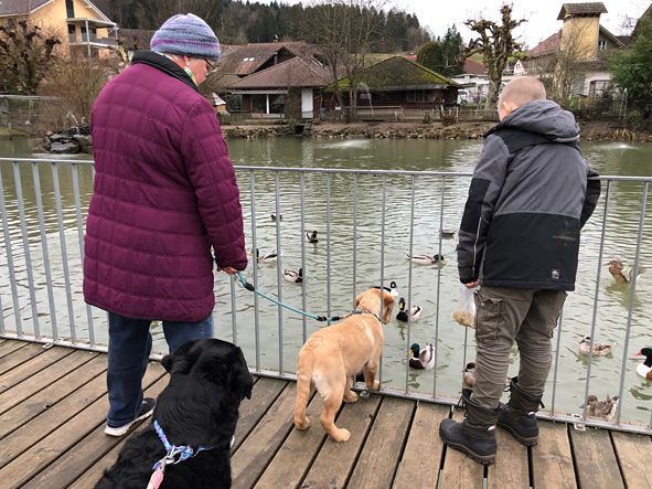 Saba lernt in Begleitung ihrer Tante Latisha den Entenweiher in Roggwil kennen und ist