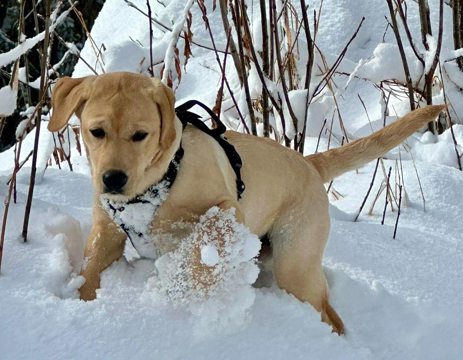 Fenja Fleur von Britho im ersten Schnee, den sie offensichtlich geniesst.