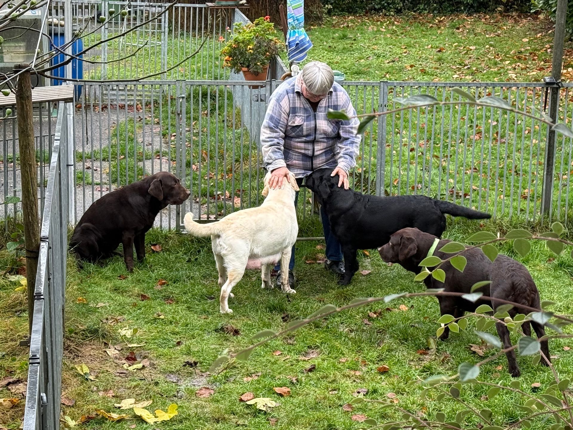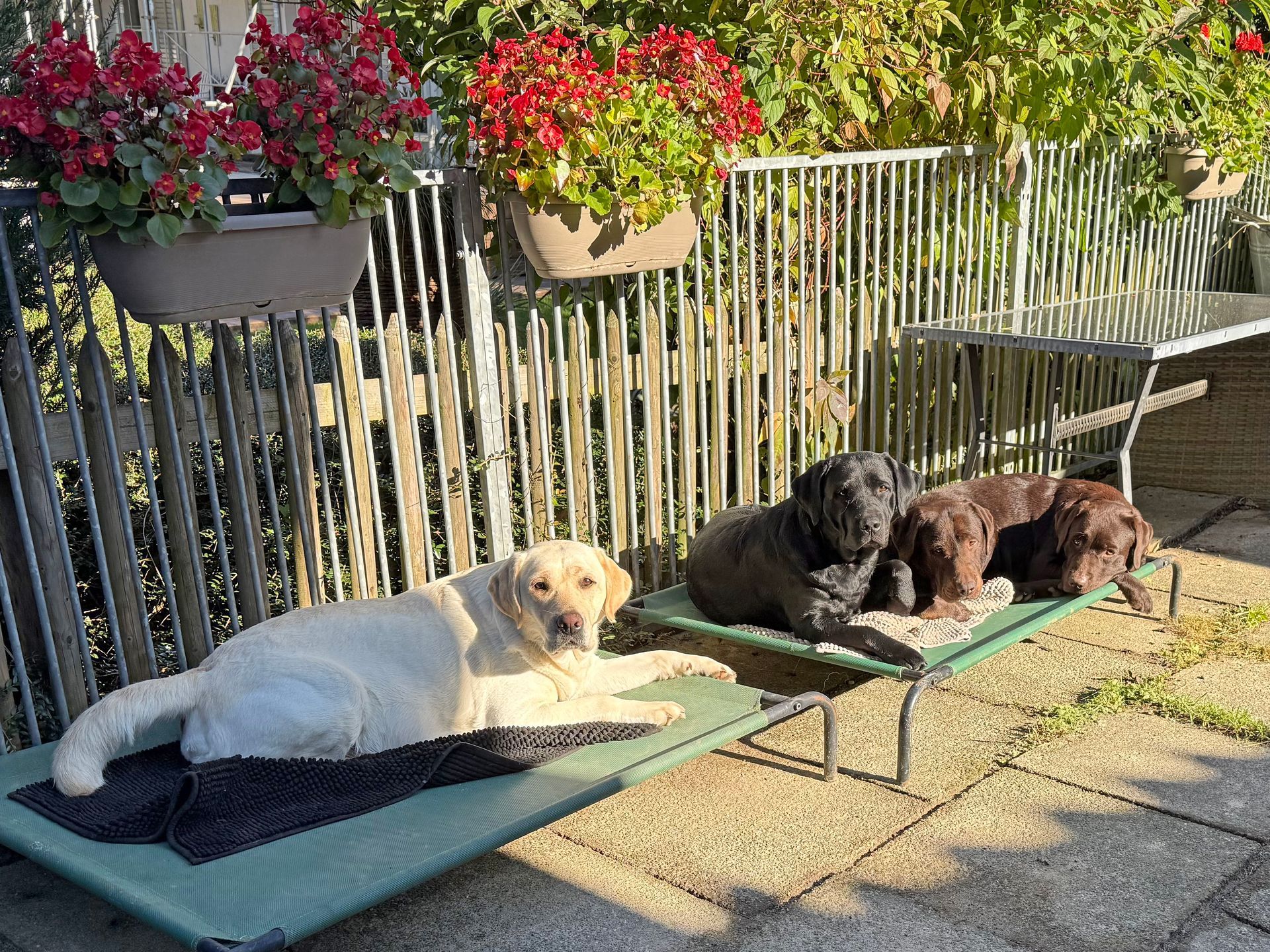 Stilleben bei uns im Eingangshof. Vanilla, Sugus, Pamina und Xanthi geniessen die Herbstsonne