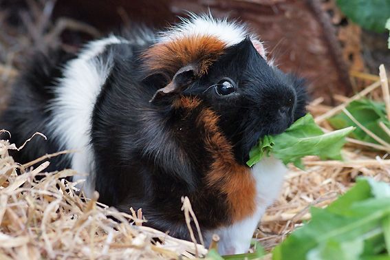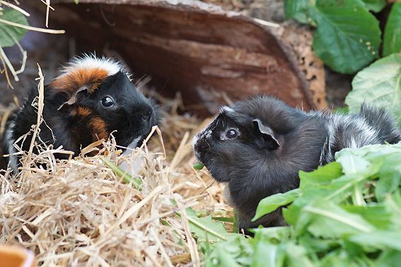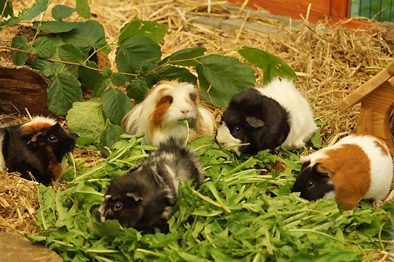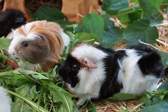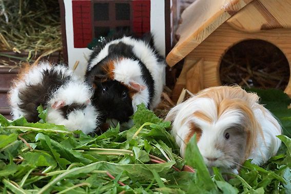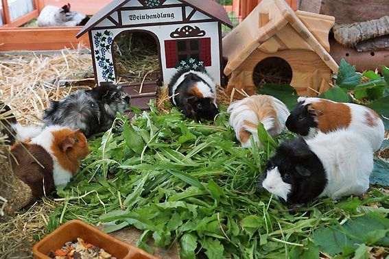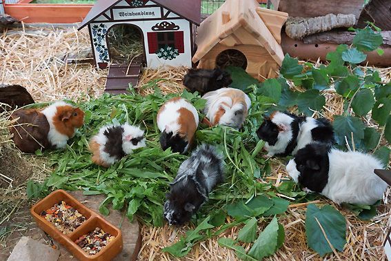 Unsere Meerschweinchen fühlen sich rundum wohl. Sie bekommen neben Körner und Heu