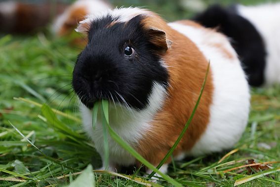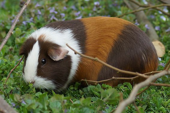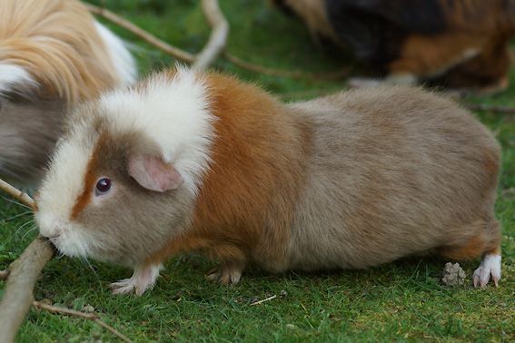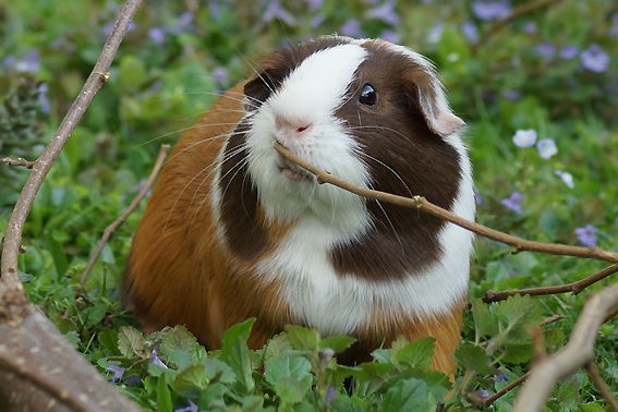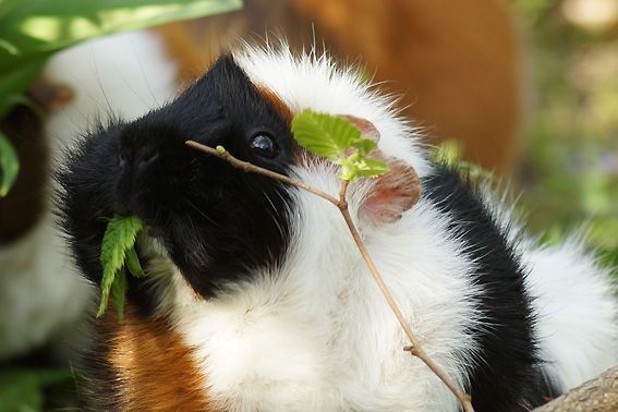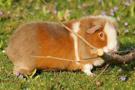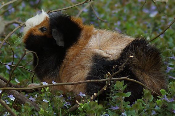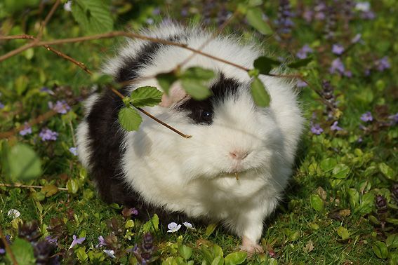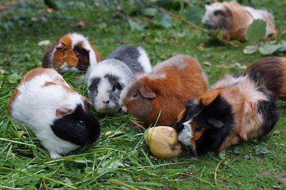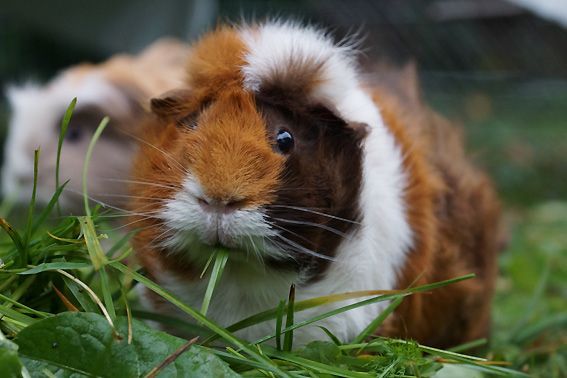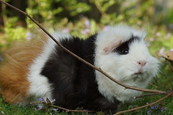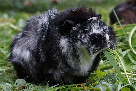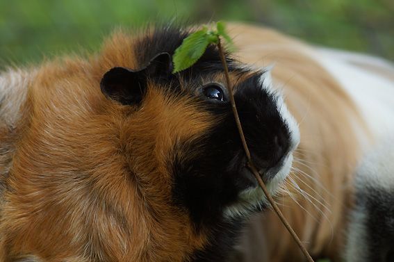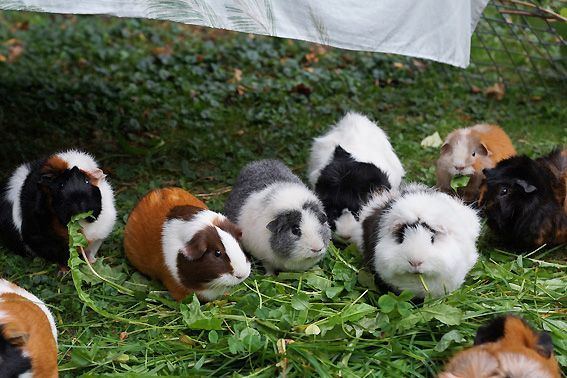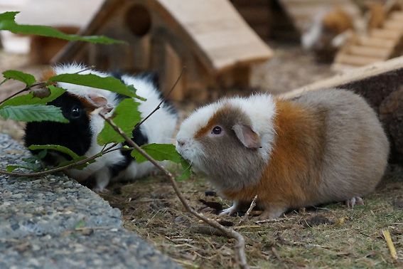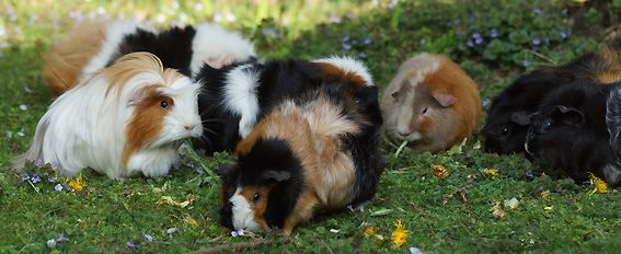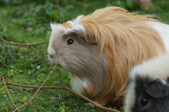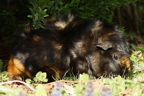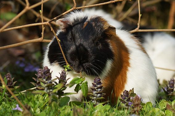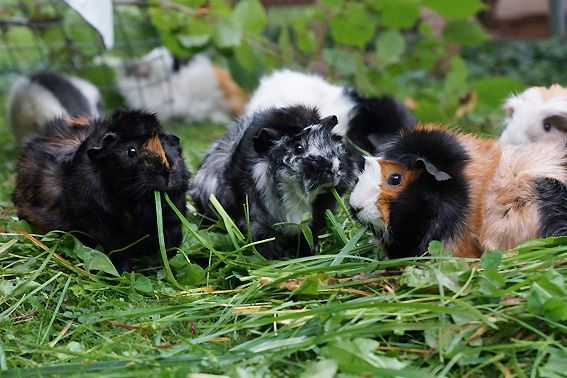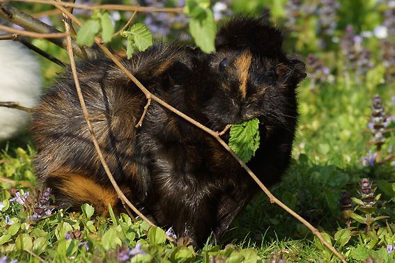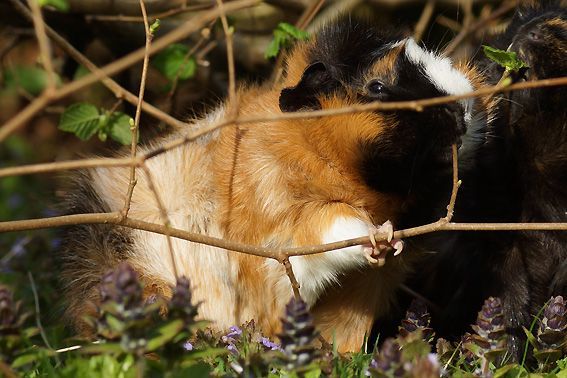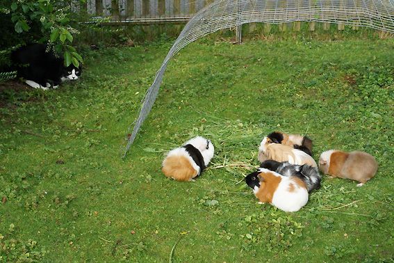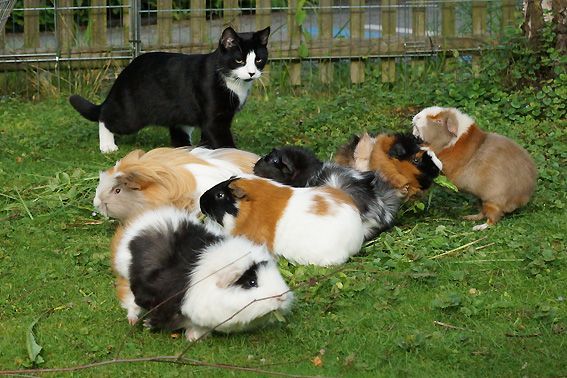 Kater Obelix ist sehr interessiert an unseren Meerschweinchen. Er tut ihnen nichts und nähert sich ihnen ganz vorsichtig.