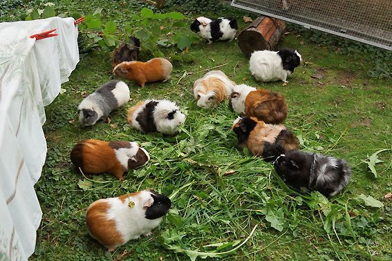 Es ist Herbst geworden. Es gibt immer noch jeden Tag frisches Gras, das wir sehr lieben. Mittlerweile sind wir 13 Mäuler und wir geniessen jeden Tag den erweiterten Ausgang im grossen Gehege.