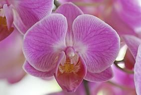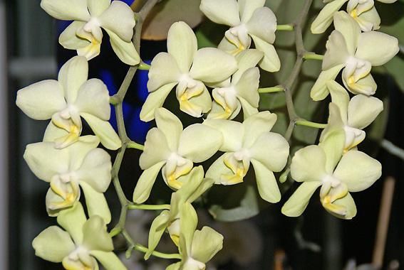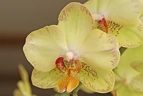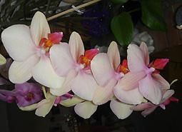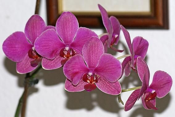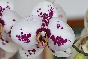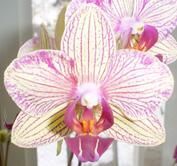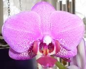In unserem Blumenfenster pflegen wir eine Anzahl von farbenprächtigen Orchideen