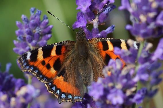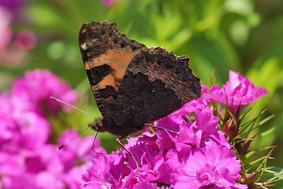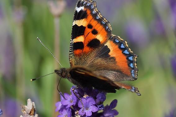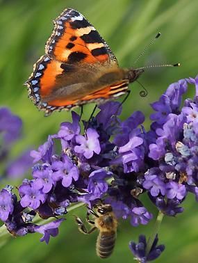 Schmetterlinge und Falter besuchen die Blüten in unserem Garten. Sie suchen Nektar und